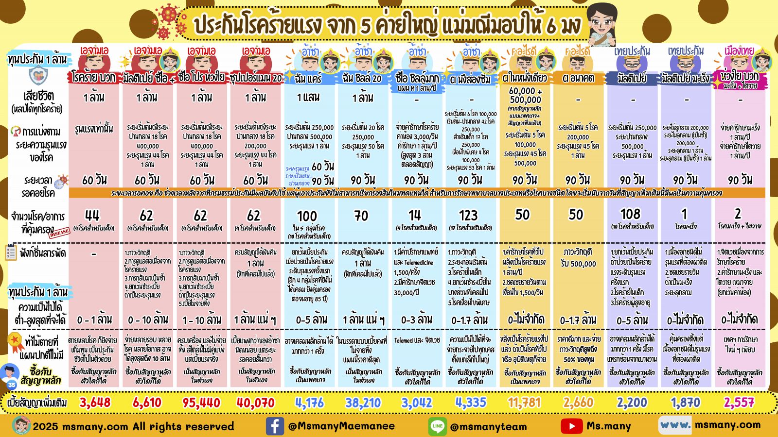 ประกันโรคร้ายจาก 5 ค่ายใหญ่ แม่มณีมอบให้ 6 มง